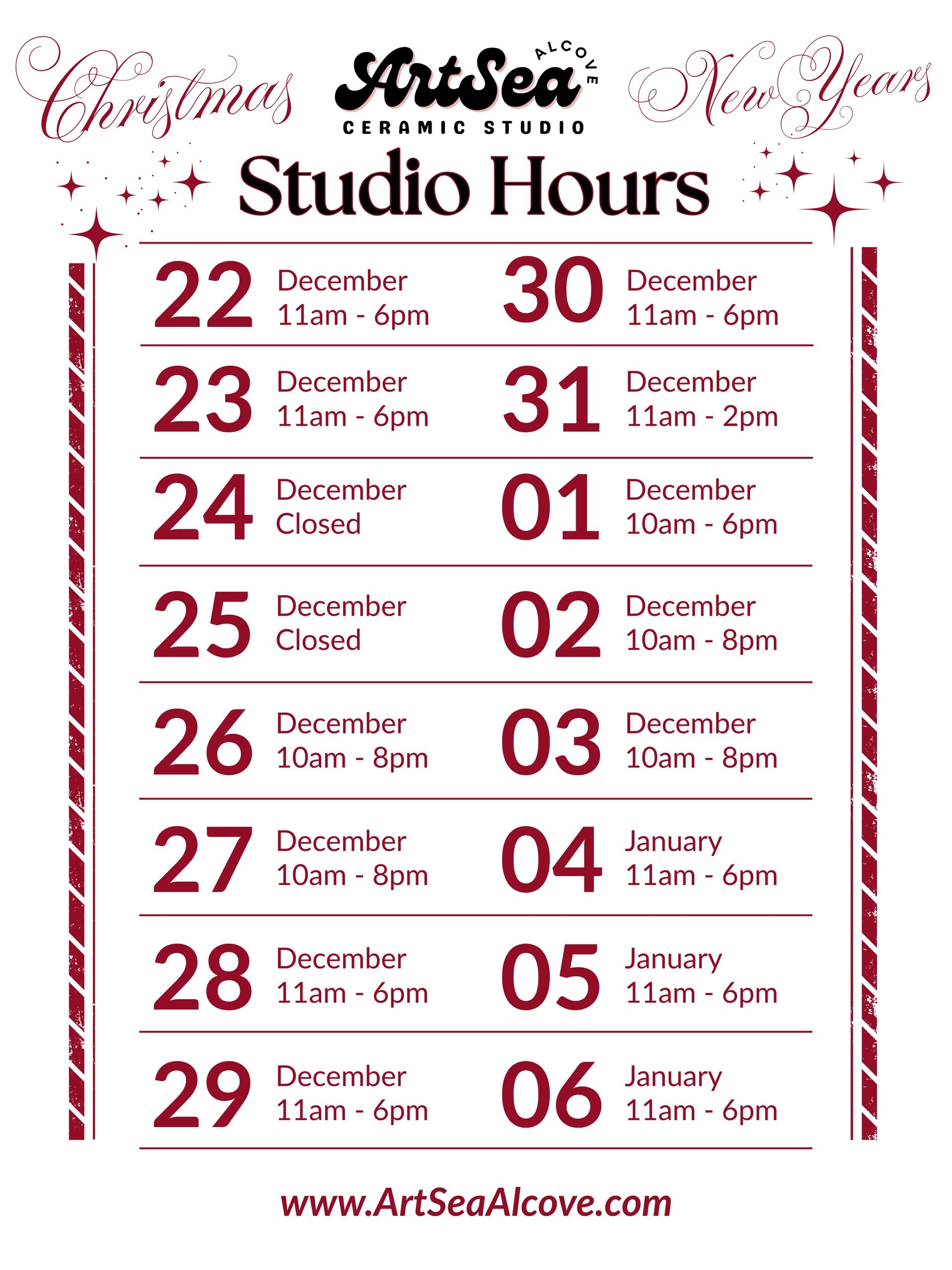 🎉 New Year’s Day: 10 AM – 6 PM